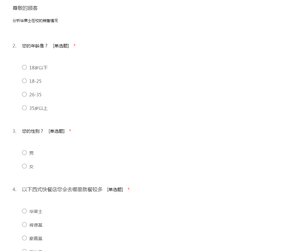 华莱士在校销售市场调查问卷