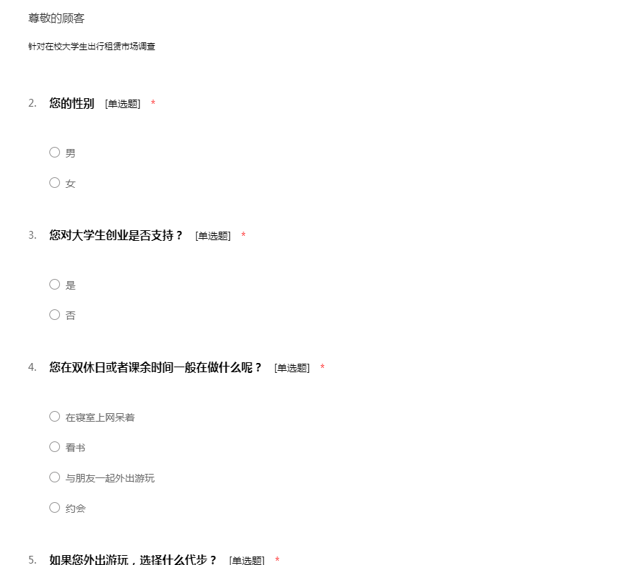 针对在校大学生出行租赁市场调查