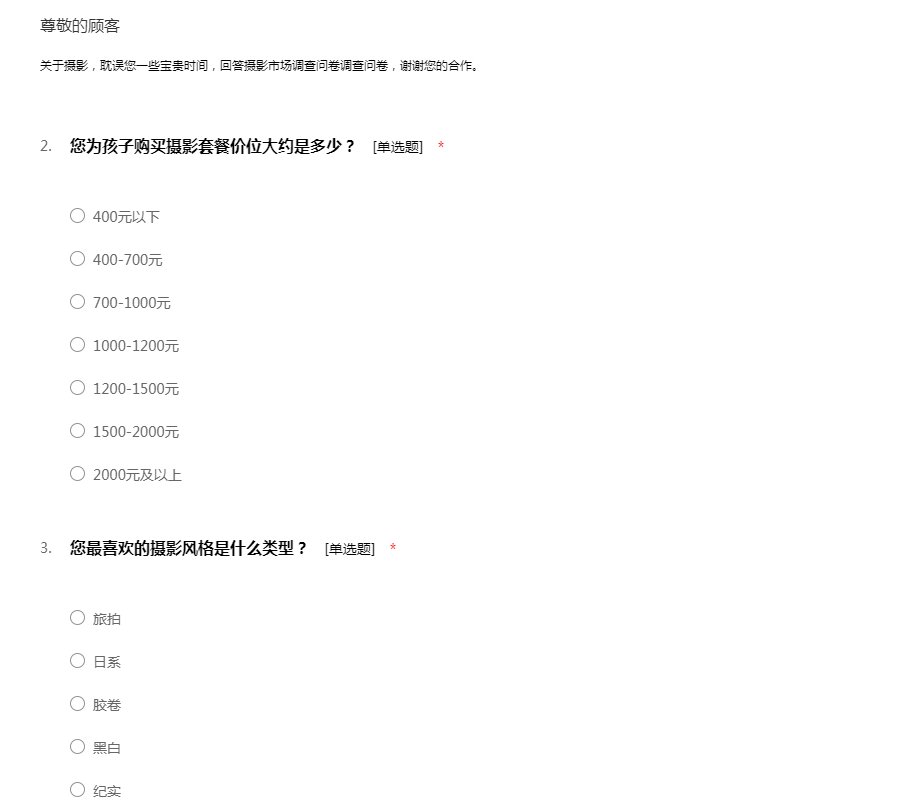 关于摄影,耽误您一些宝贵时间,回答摄影市场调查问卷调查问卷,谢谢您的合作。