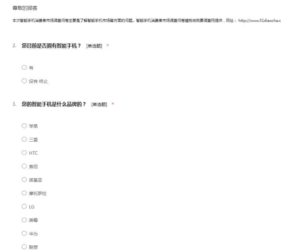 本次智能手机消费者市场调查问卷主要是了解智能手机市场等方面的问题。智能手机消费者市场调查问卷模板由我要调查网提供,网址: http://www.51diaocha.com