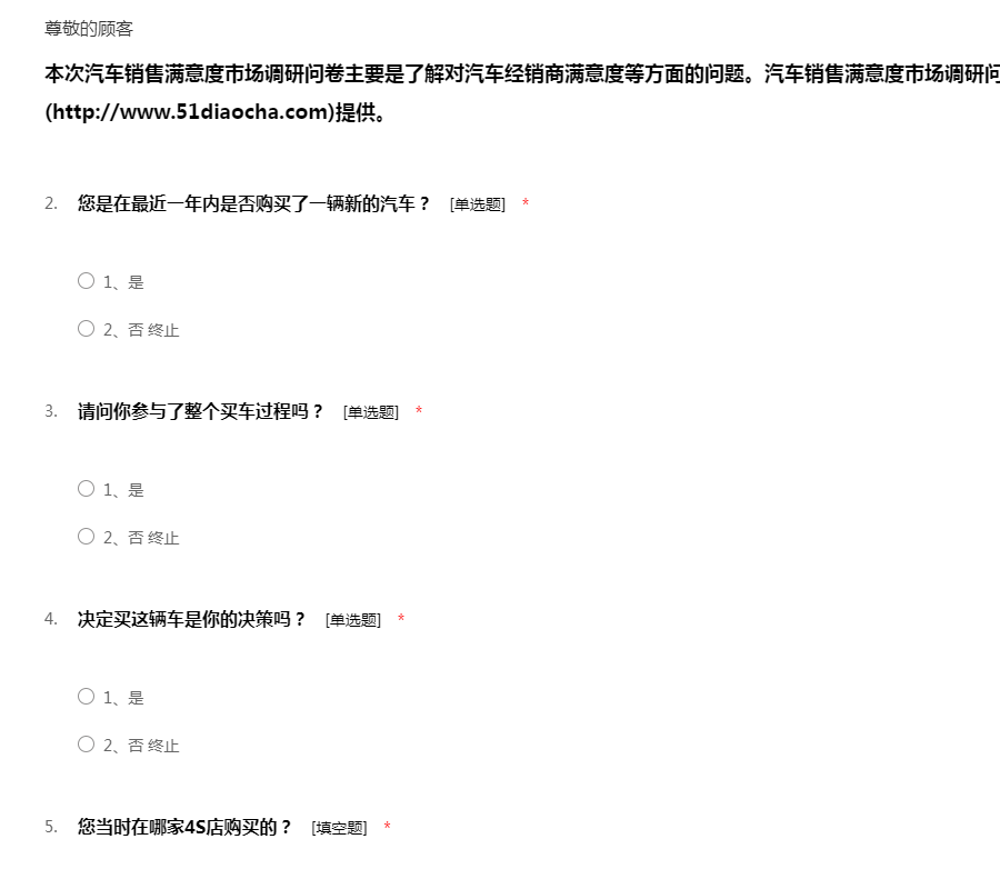 汽车销售满意度市场调研问卷模板