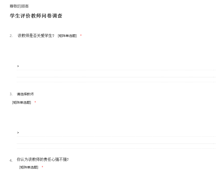 欢迎参加“学生对教师问卷调查”的调查工作!感谢您抽出宝贵的时间配合我们的调查工作,51调查网谢谢您的参与。