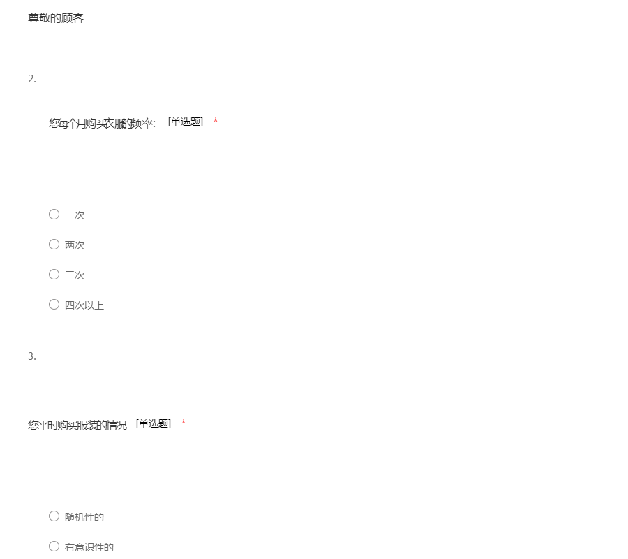 你好,我是一名学生,正在做一个有关于服装市场的市场调查,希望可以浪费你几分钟的时间 完成这份问卷。谢谢