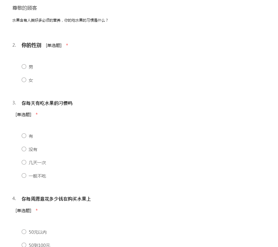 水果问卷调查问卷