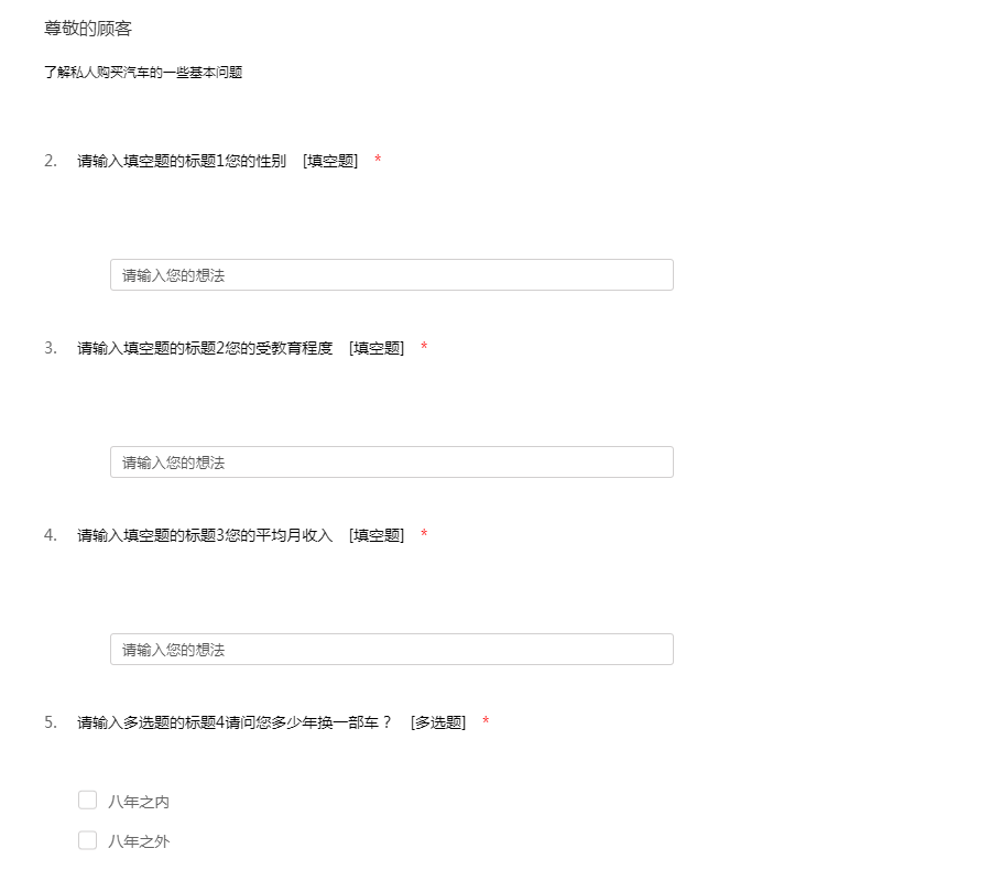 本次汽车市场调查问主要是了解汽车品牌、功能、动力等方面的问题。