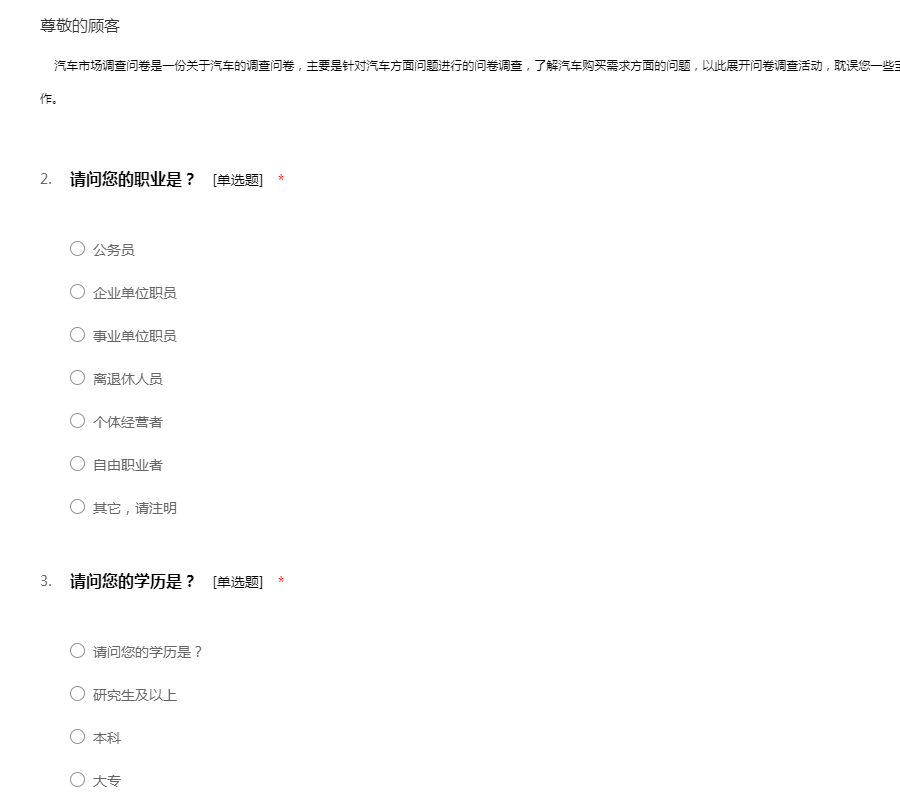 汽车市场调查问卷是一份关于汽车的调查问卷,主要是针对汽车方面问题进行的问卷调查,了解汽车购买需求方面的问题,以此展开问卷调查活动,耽误您一些宝贵时间,回答汽车市场调查问卷 ,谢谢您的合作。
