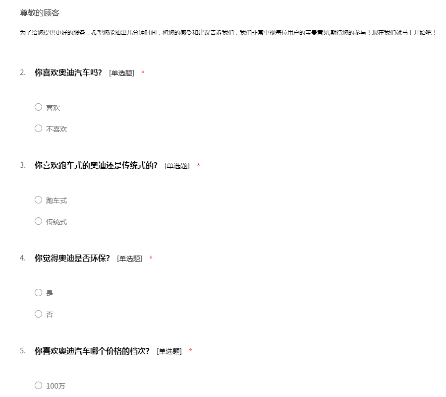 您好!我们正在进行一项关于“大众汽车市场的问卷调查”,想请教下您的看法,希望您能在百忙之中抽空回答我们的问题,51调查网(我要调查网)谢谢您的参与。