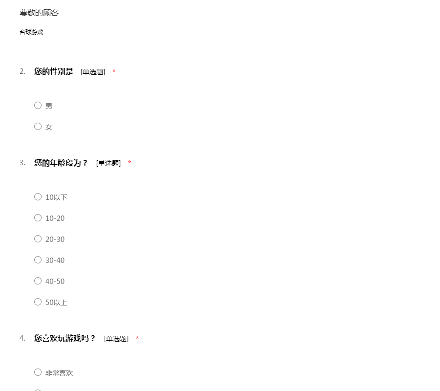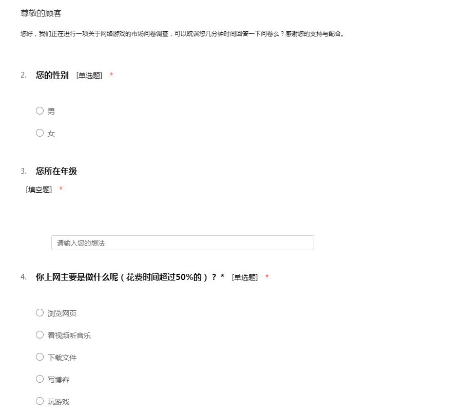 玩游戏问卷调查