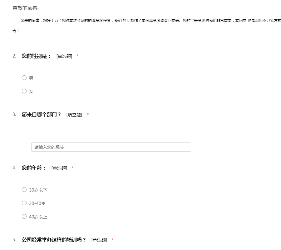 您好!此次调查工作是为了了解员工培训的满意程度。希望您抽出一点宝贵时间积极配合我们的调查工作,51调查网谢谢您的参与。