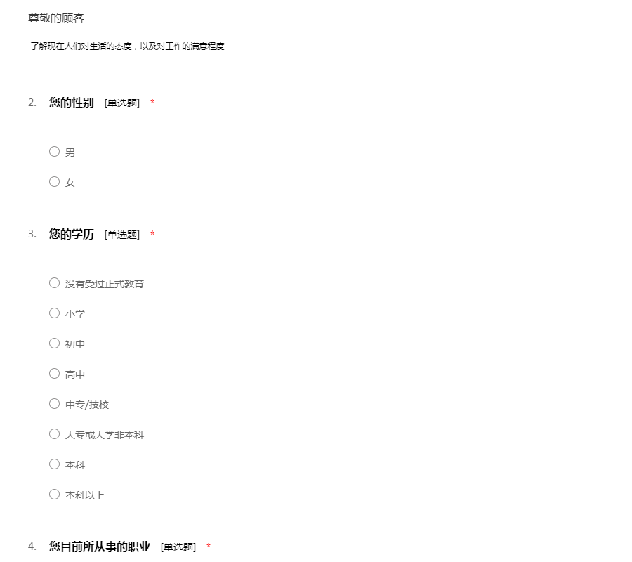 了解现在人们对生活的态度,以及对工作的满意程度