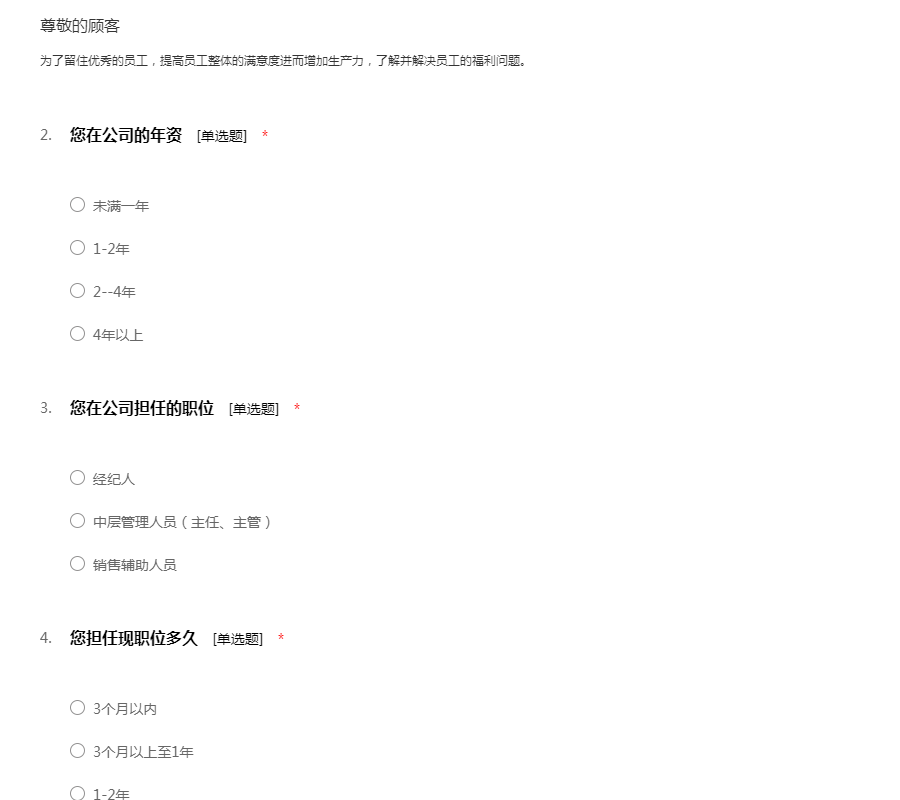 员工工作环境满意度问卷模板