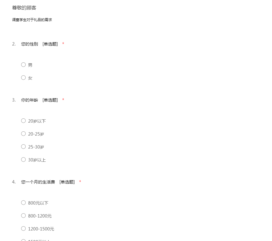 礼品市场调查问卷