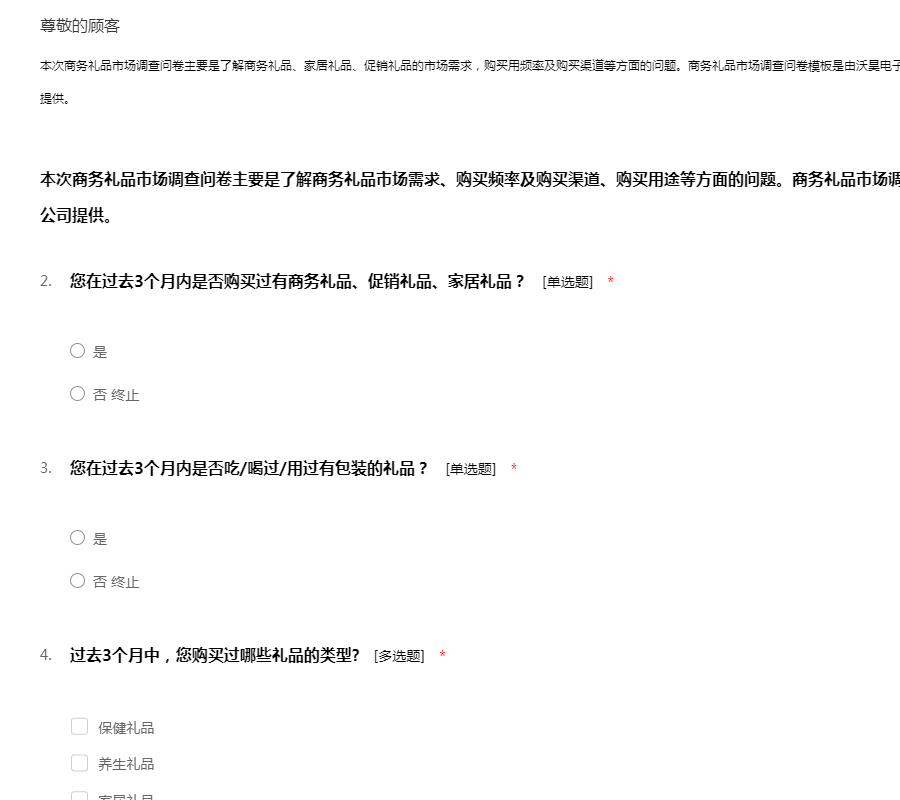 商务礼品市场调查问卷模板