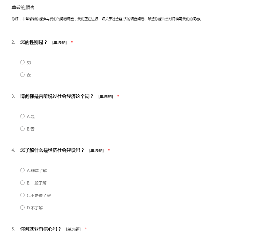 你好,非常感谢你能参与我们的问卷调查,我们正在进行一项关于社会经 济的调查问卷,希望你能抽点时间填写我们的问卷。
