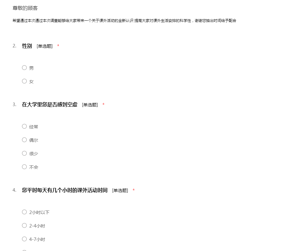 课外活动调查问卷