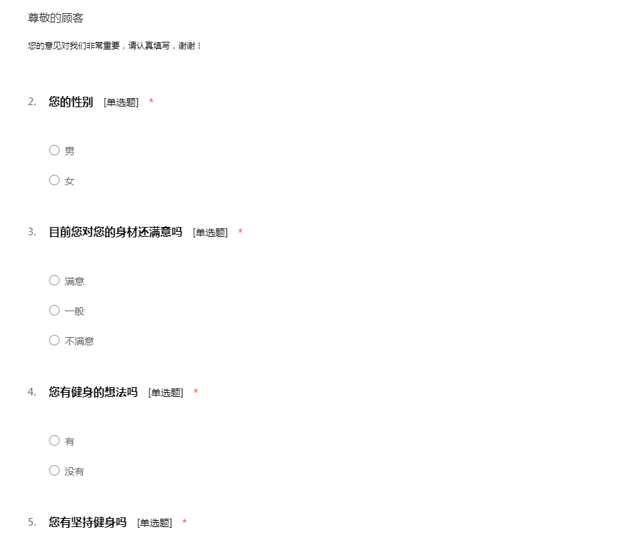 关于健身的调查问卷
