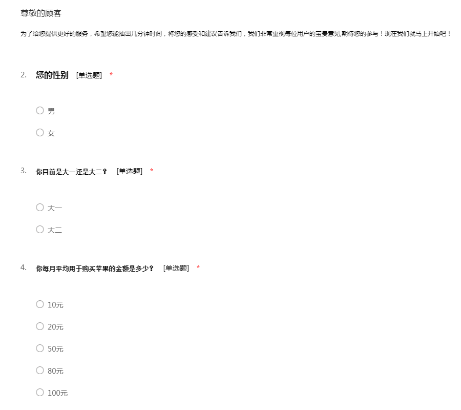 苹果市场调查问卷