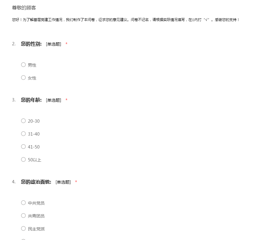 您好!为了解基层党建工作情况,我们制作了本问卷,征求您的意见建议。问卷不记名,请根据实际情况填写,在□内打“√”。感谢您的支持!